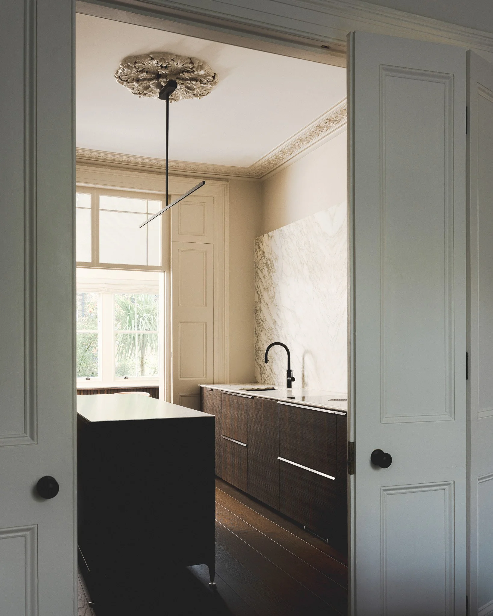 From here, a series of design moves unfold driven by a desire to showcase original features such as marble fireplaces and decorative cornicing to their best form.