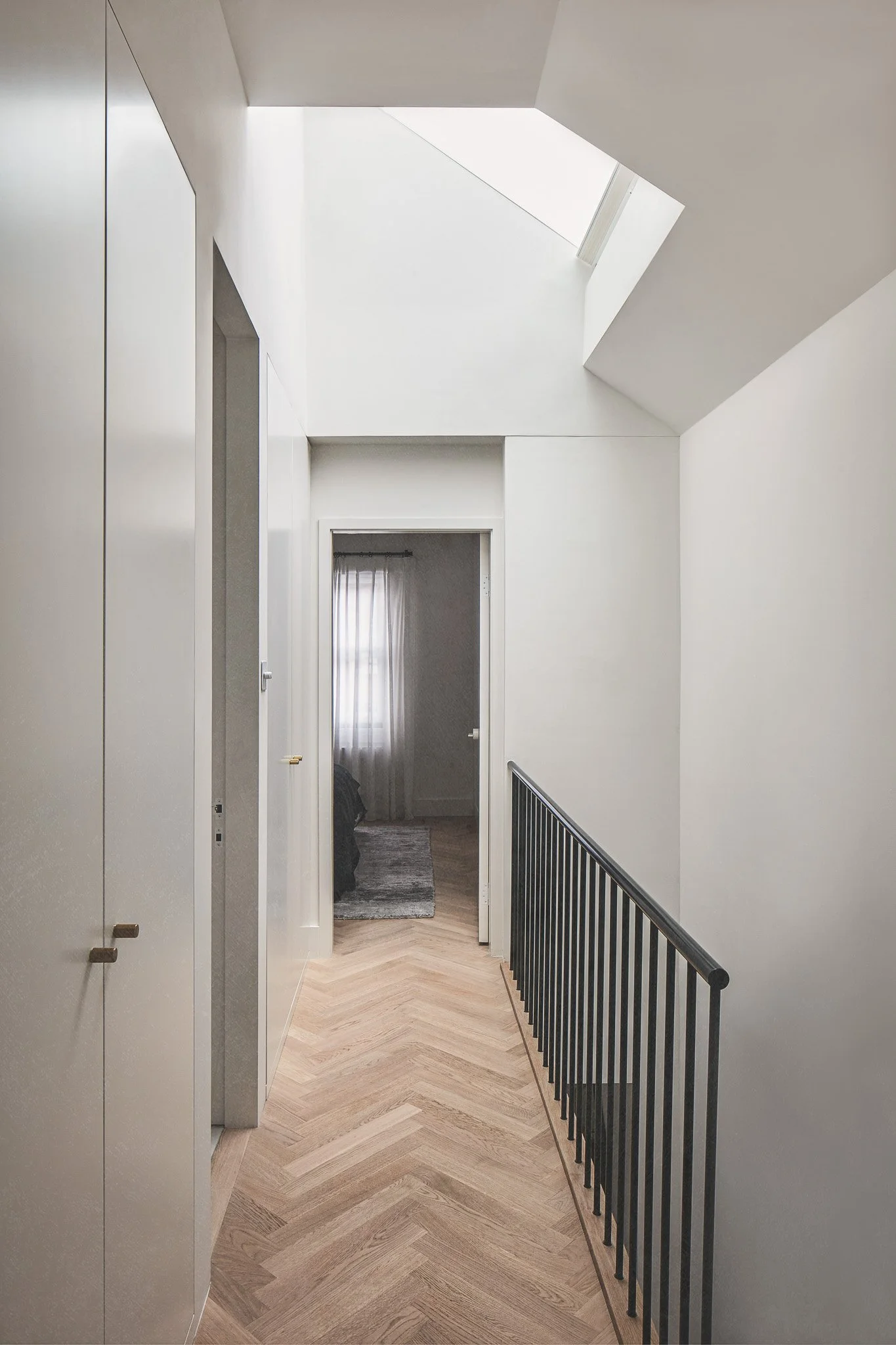 Our plan is almost always to create at least one line of sight throughout the whole of the ground floor. This throughline improves the amount of light in any space and also inevitably makes the space feel bigger. As the property was long and narrow, our suggestion was to open up the entire ground floor. However, we also wanted to create pockets of space that felt like they had a specific function.